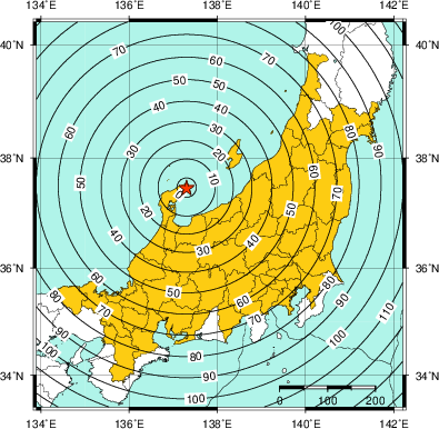 緊急地震速報 発表範囲