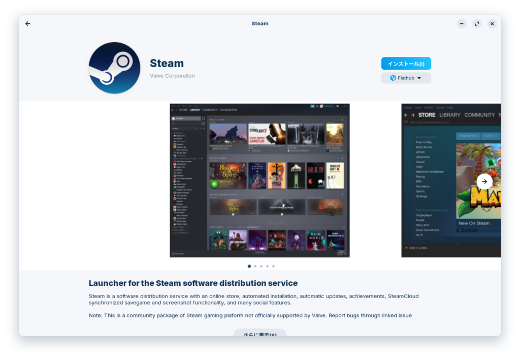 何をしたかというと、Steamには公式からProtonというものが提供されていて、これはWindows向けゲームをLinuxおよびMacOSで実行できるようにするという機能をもたらします。