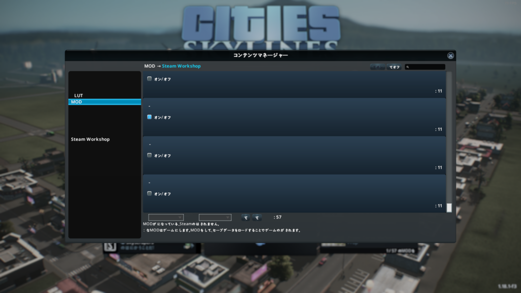 MODが悪さしているのではないか?と思いましたので、重そうなMODをすべて無効化します。