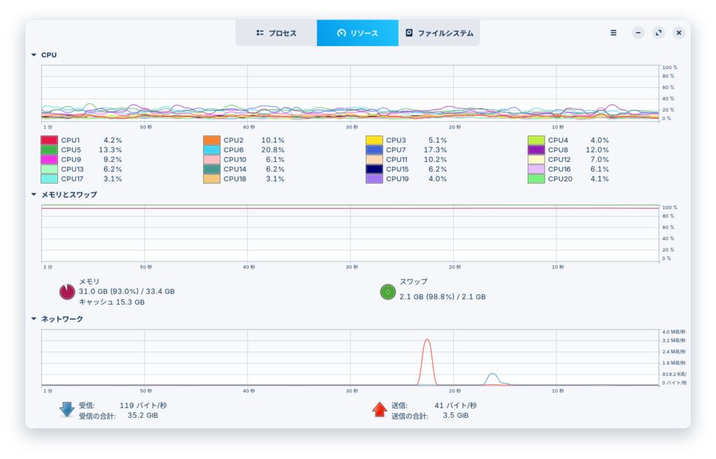 リソースの読み込み(ディスク読み込み)で明らかな速度低下が見られています。